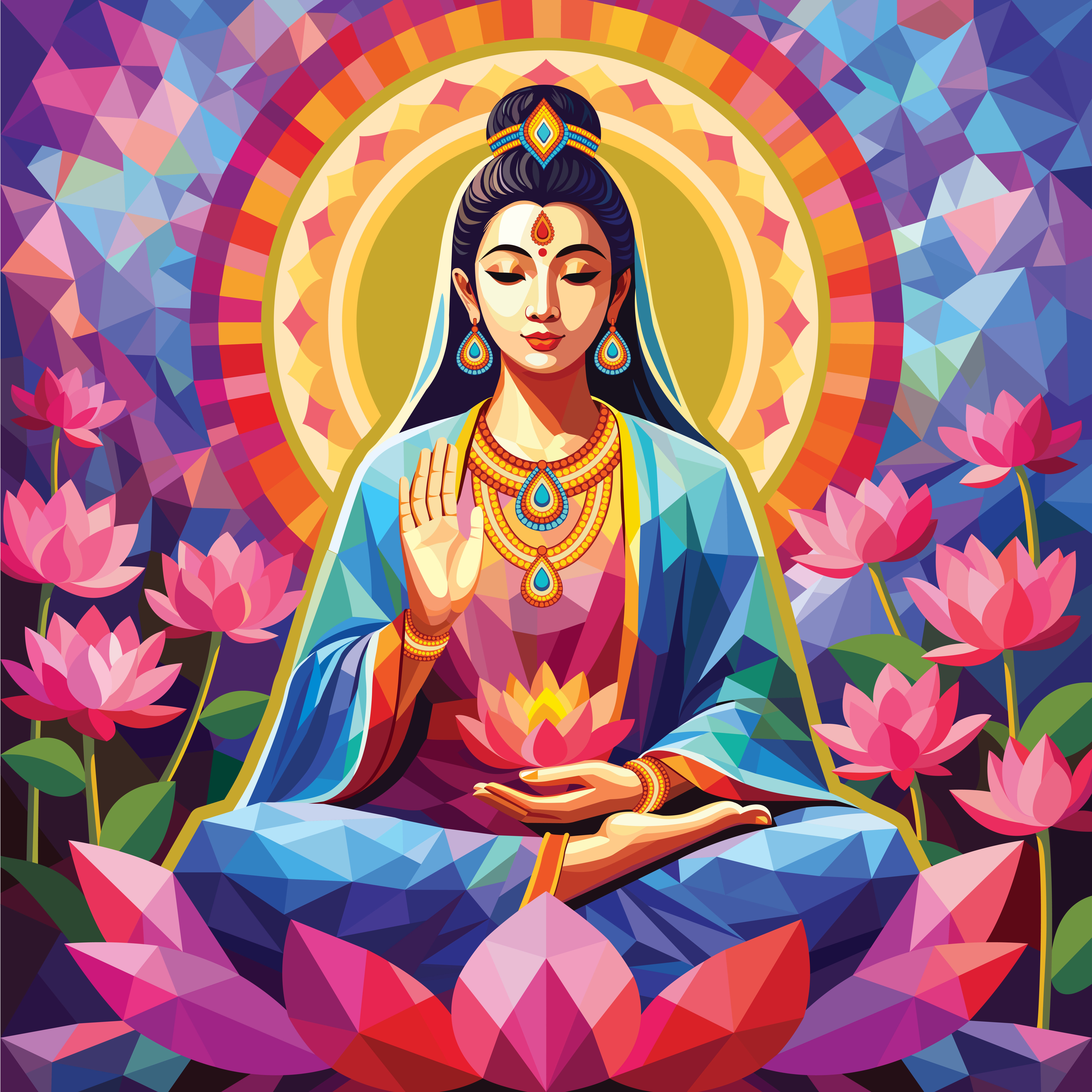 Shoma: We have a Buddha statue in our backyard and every day our dogs Sage and Bliss pee right in front of it. He always looks calm and peaceful. That’s what I wanted to capture in the painting and how I want to be when things get thrown at me that are new and uncomfortable to me